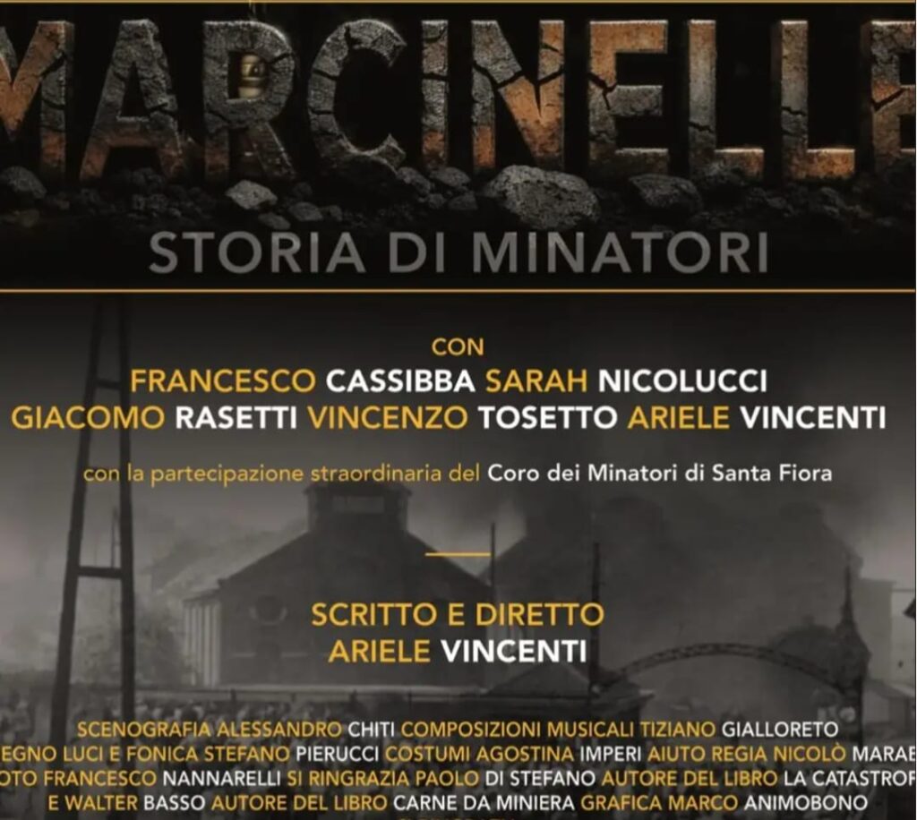 Lo spettacolo approda il 21 marzo per due date al Teatro Domma di Roma – Acilia (Via di Macchia Saponara 106 – cell. 3286077138) dopo essere stato in scena a febbraio al Teatro Comunale di Santa Fiora oltre che al Teatro Francigena di Capranica, e a marzo allo Spazio Diamante di Roma. Il 29 marzo sarà la volta del Teatro Comunale di Pineto, che vuole ricordare il tragico disastro minerario, un dolore che ha segnato profondamente anche l’Abruzzo.