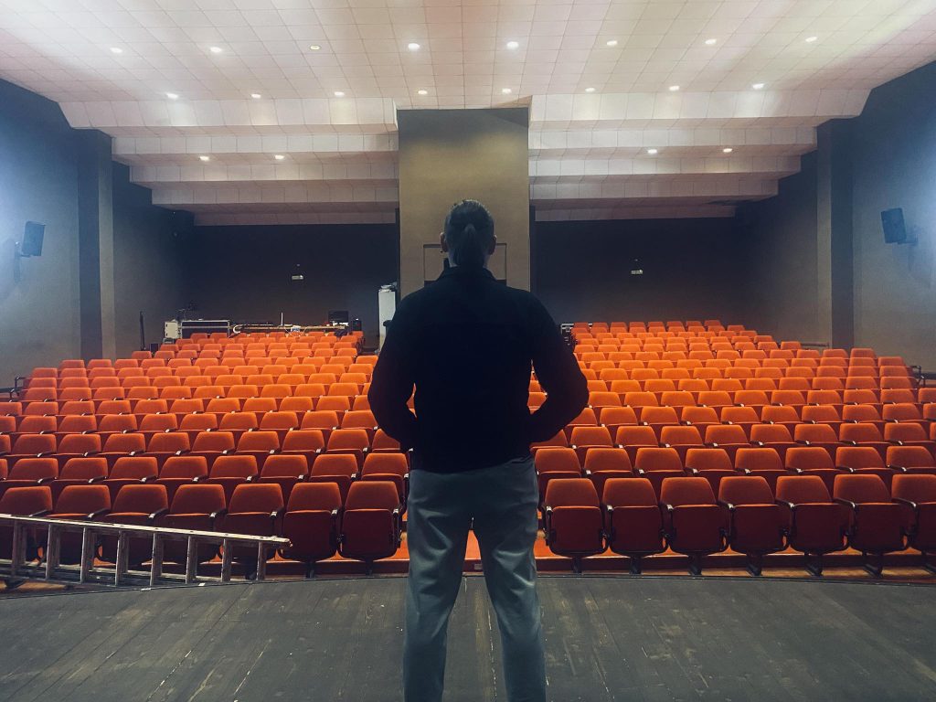 Nella foto in alto il Mago Pablo durante una pausa delle prove nel Teatro Domma. Nel video sottostante, uno dei suoi numeri di manipolazione con le carte da gioco