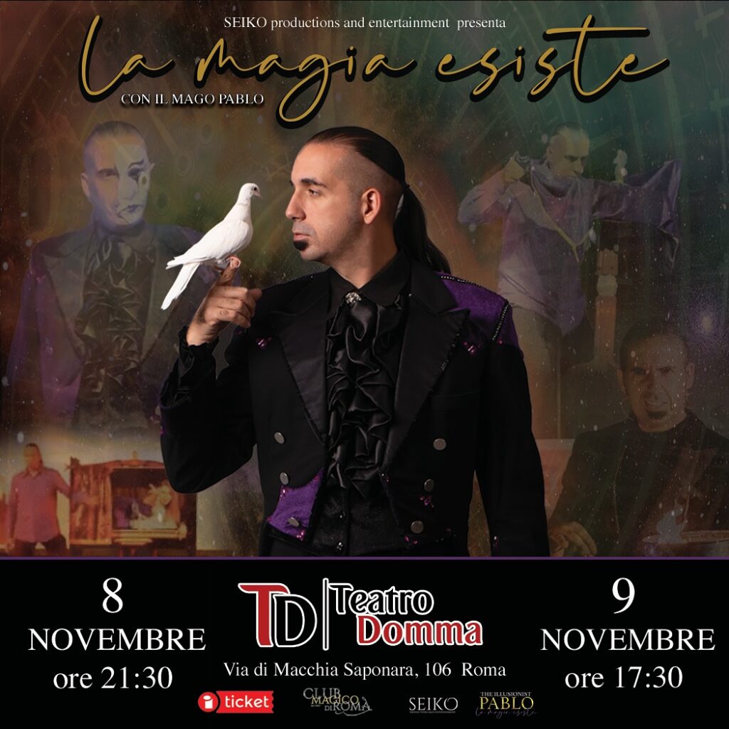I prossimi 8 e 9 novembre l’arte dell’illusionismo viene celebrata dallo spettacolo “La magia esiste” di Paolo “Pablo” Zamparelli.