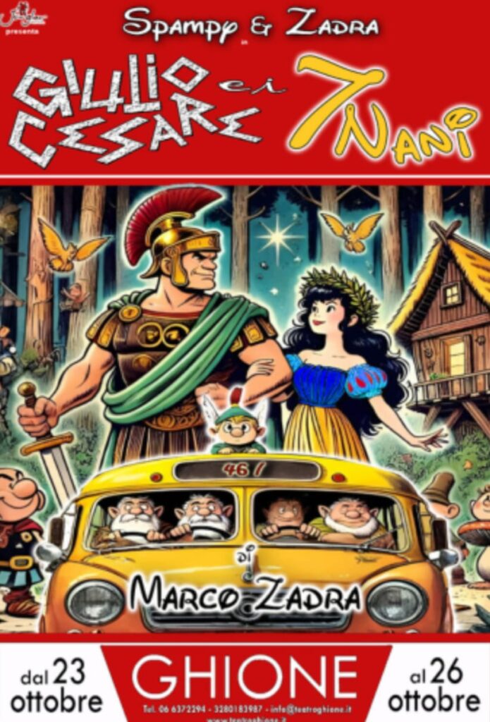 Marco Zadra festeggia i suoi 40 anni di attività teatrale con un kolossal: “Giulio Cesare e i 7 Nani”, un viaggio nella storia e nel mondo delle favole, frutto della sua creatività al di fuori di ogni schema tradizionale.