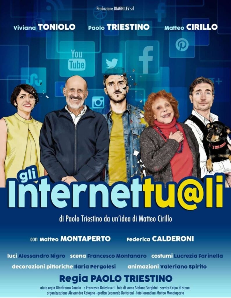 Liberamente ispirato a INTERNET SPARITO, il cortometraggio di Matteo Cirillo vincitore di una trentina di premi nei festival del settore corti, “Gli Internettu@li – Ma dove vai se un profilo non ce l’hai?” di Paolo Triestino è una commedia in cui tutti possono rispecchiarsi: i più giovani riconosceranno i propri genitori che cercano affannosamente di non restare indietro con la tecnologia ed i meno giovani potranno sorridere nel vedersi rappresentati alle prese con i social media.
